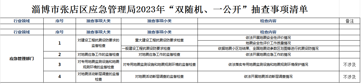 淄博市张店区应急管理局2023年“双随机、一公开”抽查事项清单