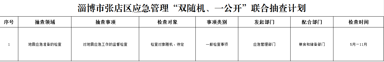 淄博市张店区应急管理局2023年双随机、一公开联合抽查计划