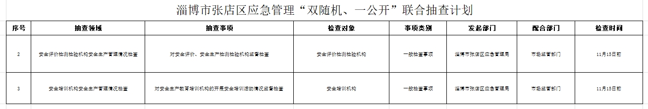 淄博市张店区应急管理局2024年内部双随机、一公开抽查计划